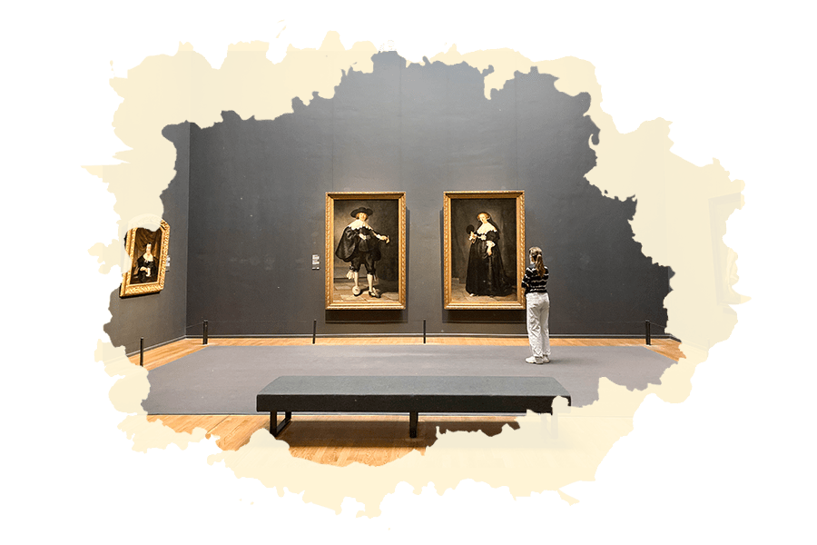 Auf drei Etagen findest du eine Sammlung, die von antiken Shiva-Skulpturen bis zu einem Mondrian-Kleid von Yves Saint-Laurent reicht! Der Fokus liegt hier – im Gegensatz zum Louvre oder KHM – aber auf der niederländischen Geschichte. Hauptsächlich (aber nicht ausschließlich) sind hier nordische Künstler wie Rembrandt, Vermeer oder Jan Steen vertreten, ebenso Gegenstände und Gemälde, die sich auf die Macht Hollands im 17. Jahrhundert zurückführen lassen. Objekte aus den Kolonien, Bilder in denen es um die Seemacht der Niederländer geht oder aber auch riesige Gruppenbilder, die wichtigsten sind von Rembrandt und Frans Hals, die die Gilden und ihre Macht zu dieser Zeit darstellen.
