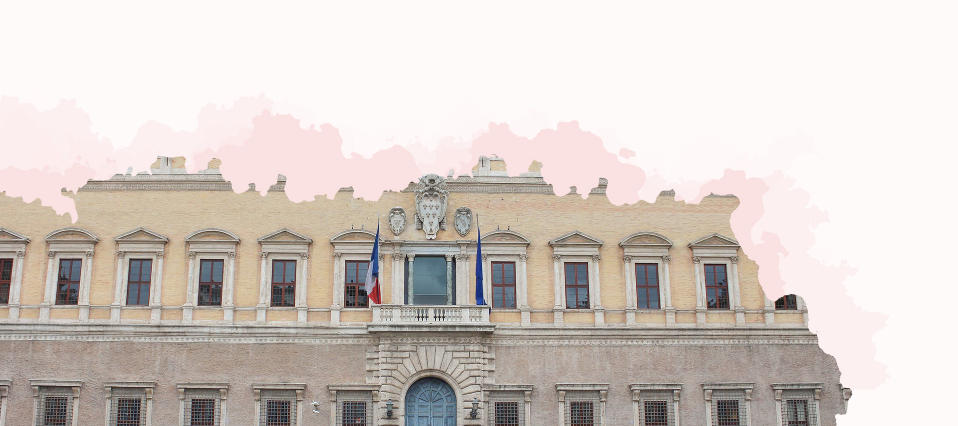 Ab 1635 wurde die Fassade durch Francesco Borromini restauriert. In dieser Zeit wurde im Innenhof auf der berühmte perspektivische Gang gebaut. Francesco Borromini wurde 1599 in der Schweiz geboren und ist 1667 in Rom gestorben. Er ist einer der bedeuteten Architekten im römischen Barock. Gerüchten zu Folge wäre er stets im Konkurrenzkampf mit Gian Lorenzo Bernini gewesen, was die beiden zu Höchstleistungen gebracht hat. Man kann sagen, dass Bernini eher der Experte für Skulpturen und Borromini eher der für Architektur ist. Angeblich wäre folgender Satz Borromnis Leitsatz gewesen: “Chi segue altri non gli va mai inanzi. Ed io al certo non mi sarei posto a questa professione col fine d’esser solo copista. (Wer anderen folgt, kommt nie vorwärts. Und ich hätte sicher nicht diesen Beruf gewählt, wenn ich nur andere hätte kopieren wollen. Aus: Opus architectonicum).