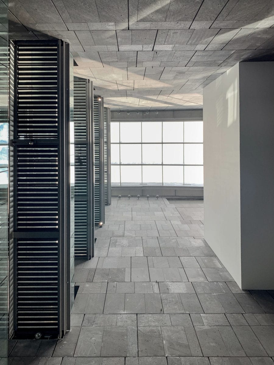 Betritt man das Foyer, ist man gefühlt im Erdgeschoss, aber tatsächlich befindet man sich genau in der Mitte des Gebäudes. Man spürt sofort die räumliche und künstlerische Größe des Museums und den Drang, mehr sehen zu wollen. Auf der linken Seite befinden sich Shop und Café und auf der rechten Seite der erste Ausstellungsraum, der sich aber genauso gut eignet, als krönender Abschluss besucht zu werden.