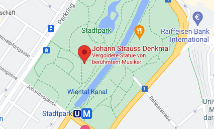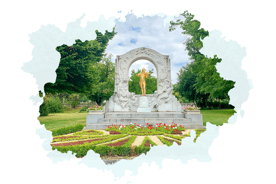 Der Wiener Stadtpark verläuft über zwei Bezirke und hat eine Fläche von 65.000 m2. Seit 1862 ist er ein beliebter Ort für Einheimische und Touristen, die diese grüne Idylle mitten im Stadtzentrum für Spaziergänge oder zum Picknicken nutzen. Die großen Grünflächen, Sitzmöglichkeiten und Spielplätze werden rund ums Jahr gerne genutzt. Selten sieht man in Wien nur eine Kultur, meistens ist es ein Mix, der im Laufe der Zeit entstanden ist. So auch im Stadtpark: Dieser wirkt ein bisschen wie ein Englischer Garten und der sich hier befindende Kursalon ist im Stil der italienischen Renaissance errichtet. Perfekt ins Rampenlicht gesetzt ist dort das Johann Strauss Denkmal. Auf einem Marmorsockel sieht man den Komponisten als vergoldete Bronzestatue auf einer Geige spielen.